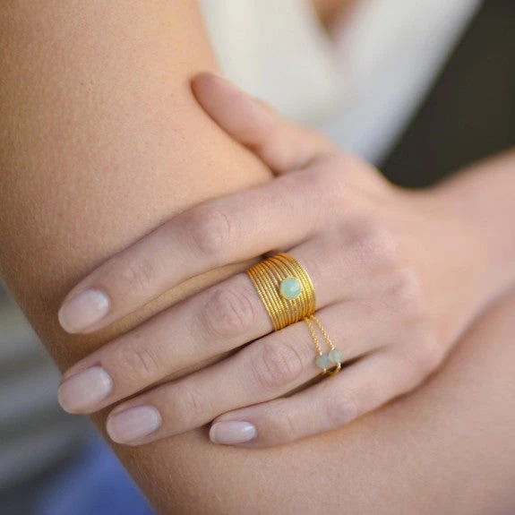 Son design ? Elle se compose de nombreux filaments assemblés sertis d’une pierre de Malachite. Elle habille élégamment votre main et accessoirise parfaitement n’importe quelle tenue.