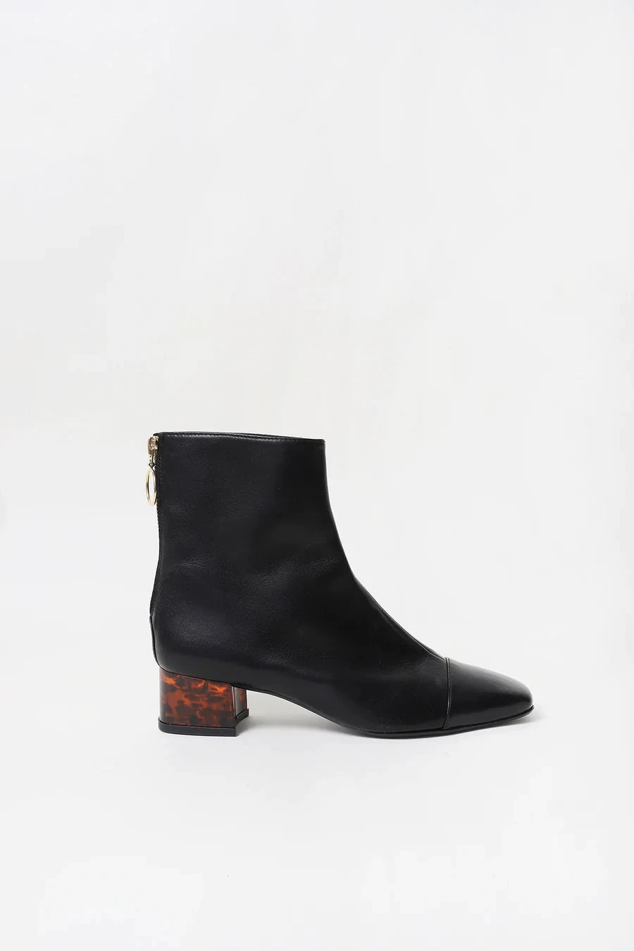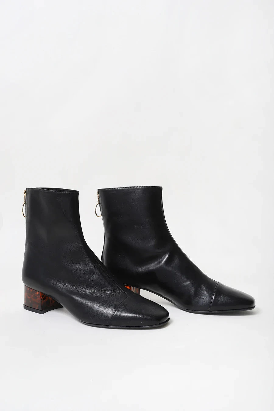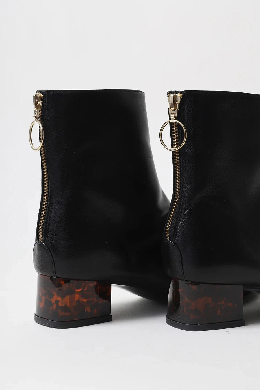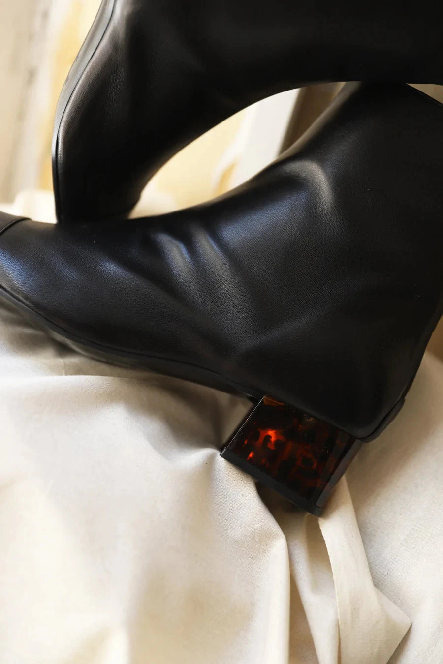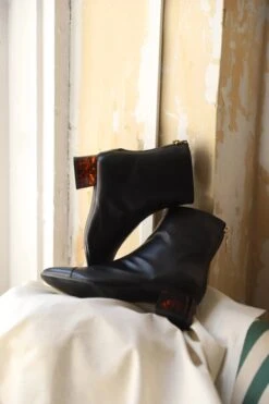 Cette paire de botte à talon vient de la marque Mint and Rose. Son talon talon carré apporte une touche chic et originale avec son effet écaille. C’est un peu la paire de bottines parfaite qui ajoute une touche de chic à sa tenue sans perdre le confort des chaussures plates.