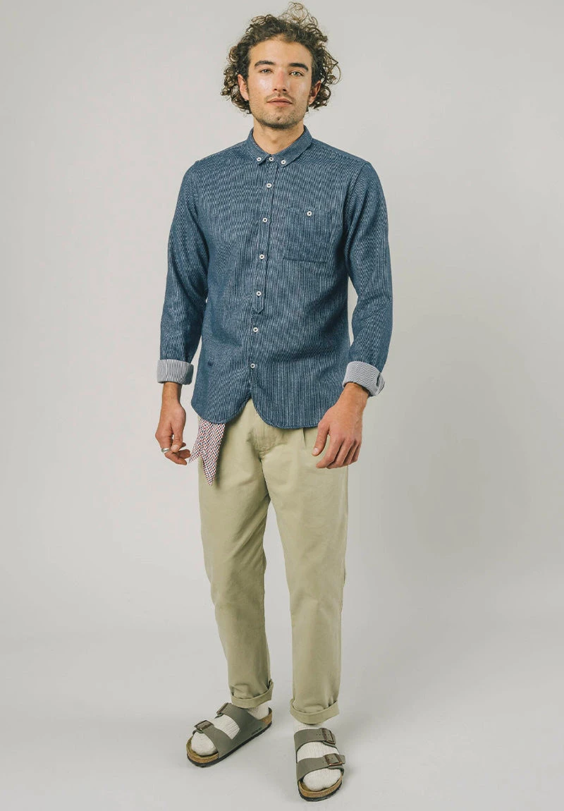 Cette chemise flannel est une création de Brava Fabrics. Elle est en coton bio et a de jolis boutons en résine d’urée. Elle est légèrement plus longue à l’arrière et a une coupe loose. Une petite poche, avec fermeture bouton, se trouve à l’avant de la chemise. Son effet rayé apporte une petit touche à la chemise pour un look cool casual.