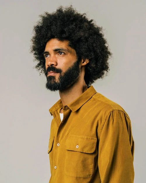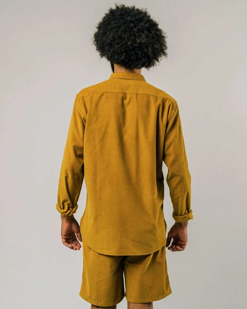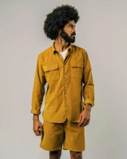 C’est la parfaite chemise de mi-saison ! Le velours est fin, il sera donc parfait pour le printemps ou pour les soirées fraîches d’été. La douceur du velours, les jolies poches plaquées et les bordures arrondies finissent de nous faire craquer pour cette chemise. Pour changer du classique bleu, c’est un rayonnant jaune moutarde qui a été choisi et on apprécie beaucoup !