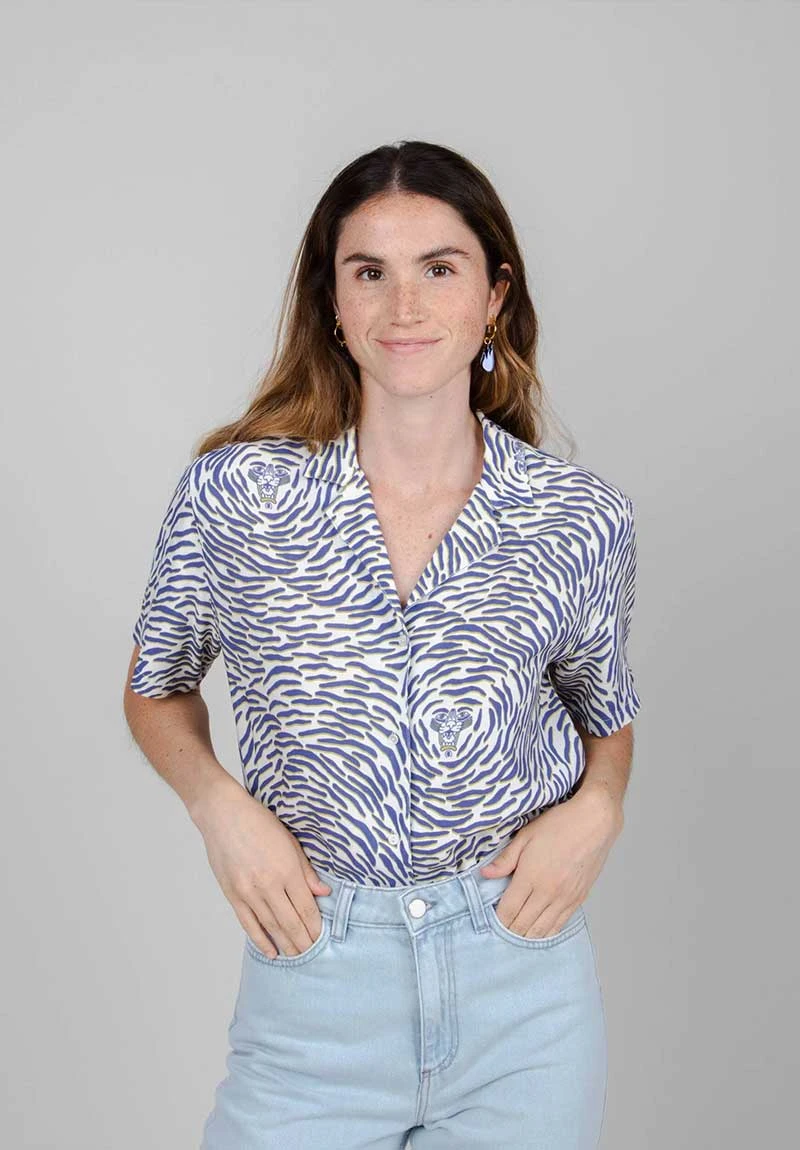 On adore l’imprimé de la chemise Tiger de Brava ! On y retrouve bien là l’originalité de la marque. Le tissus en Viscose Ecovero et lin est tout doux et confortable.