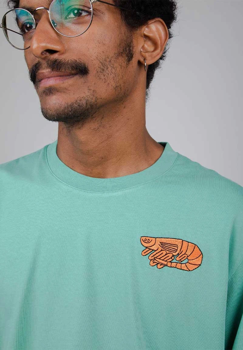 On adore le détail de la crevette brodée sur ce tee-shirt Gambas ! On y retrouve bien là l’originalité de la marque. La couleur bleu turquoise est vraiment superbe. Le tissus en coton biologique est tout doux et confortable.