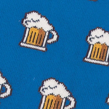 Imprimé bière sur fond bleu.