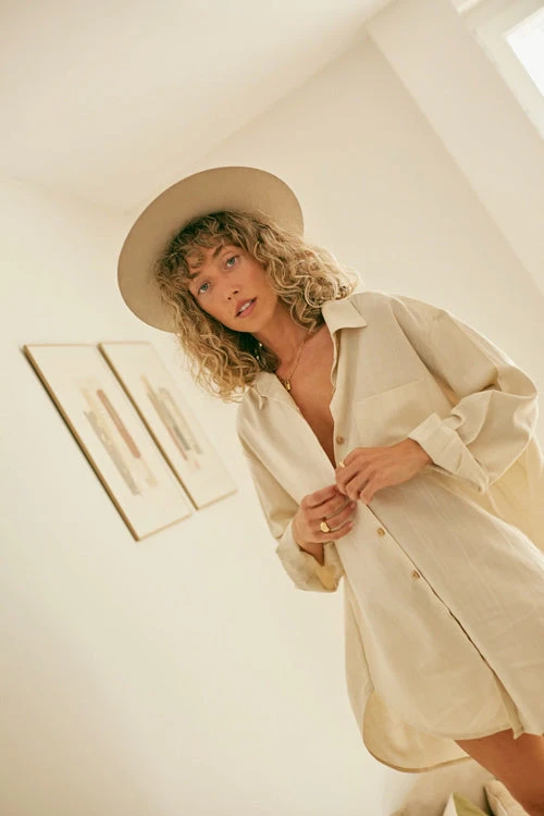 Chemise oversize femme en écru.