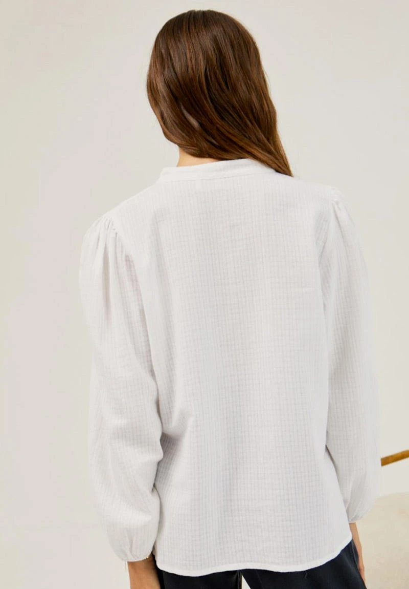 Ce chemisier manches ballons est fabriqué en Espagne.