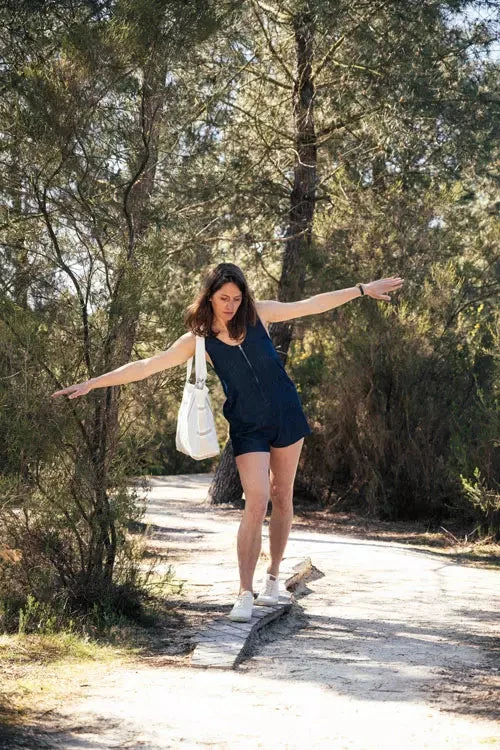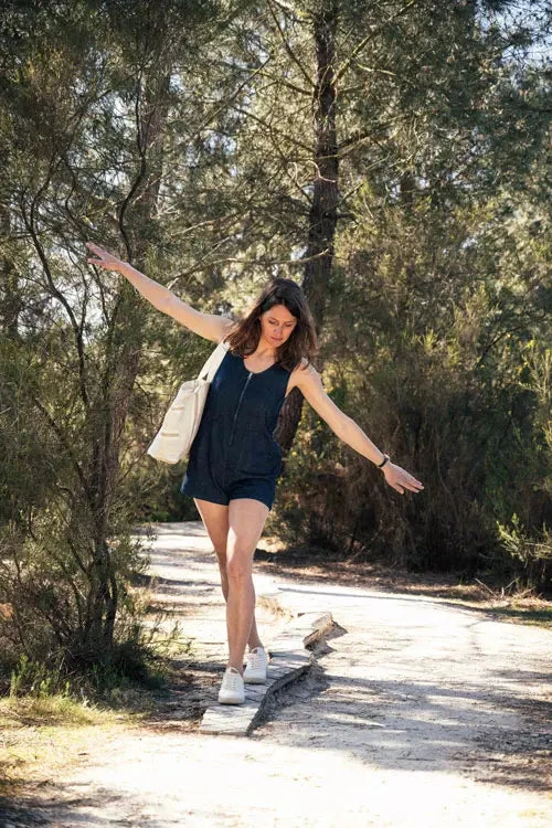 Le combishort se compose à 100% de Lyocell et plus précisément de Tencel Lenzing. Le tissu provient d’Espagne, les boutons sont en corozo c’est-à-dire de l’ivoire végétal et la teinture est Oeko-Tex ce qui garantit l’absence de substances nocives.