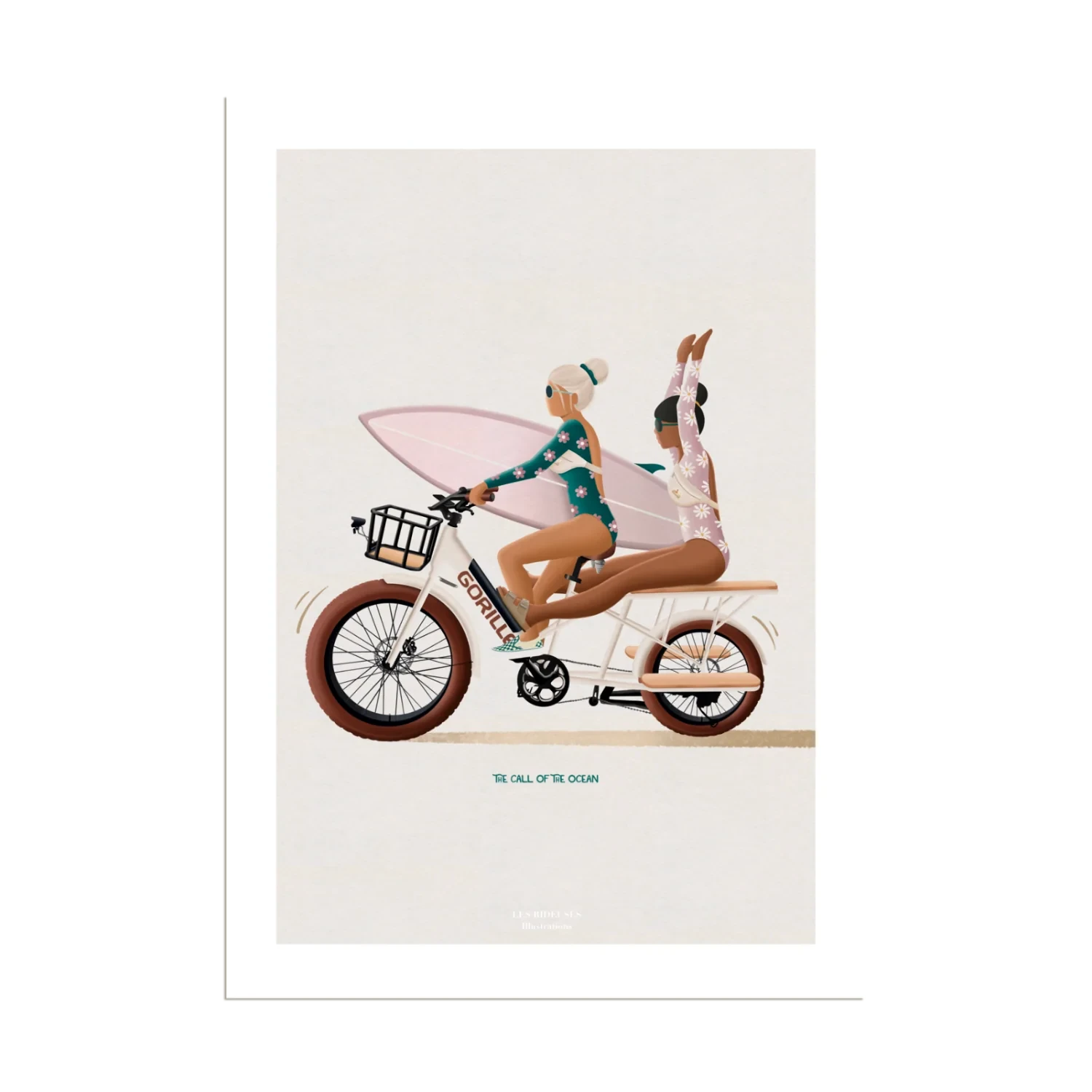 Juliette s’inspire de ses années passées en Amérique Latine pour dessiner l’art de vivre de ces Rideuses telles des Amazones de l’océan ! Elle imagine et imprime elle-même ses illustrations colorées et océanique dans les Landes où elle vit.