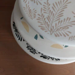 Réalisé à la main et de manière artisanale, ces dessous de plat en céramique sous forme circulaire, sont émaillés sur des faces. Ils sont imprimés à la main en sérigraphie à Lyon dans l’atelier de Poussière des rues. Chez MAT, on aime les détails des motifs et la résistance à la chaleur.