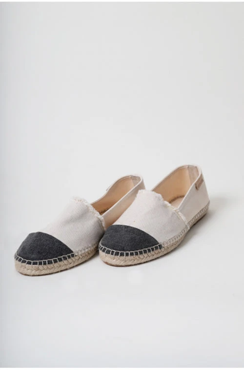Espadrilles plates beiges et bout noir.