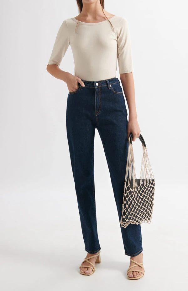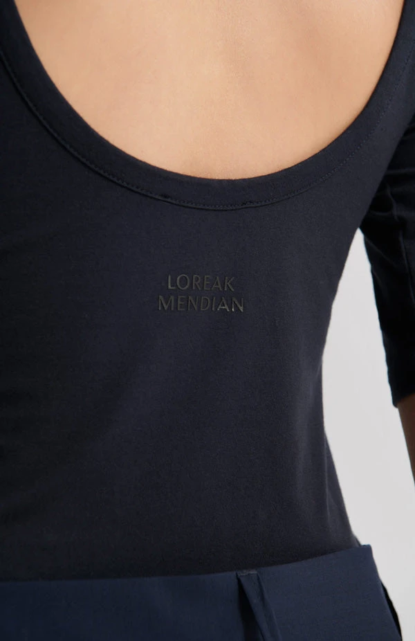 Ce haut est une création de Loreak Mendian : marque espagnole aux collections durables et design. Il est en coton bio et a une coupe près du corps. Les manches arrivent au niveau du coude. Sur le devant, le col est bateau et dans le dos un décolleté arrondi. Un haut féminin et confortable qui met en avant votre silhouette. Il peut se porter avec un pantalon comme avec une jupe !