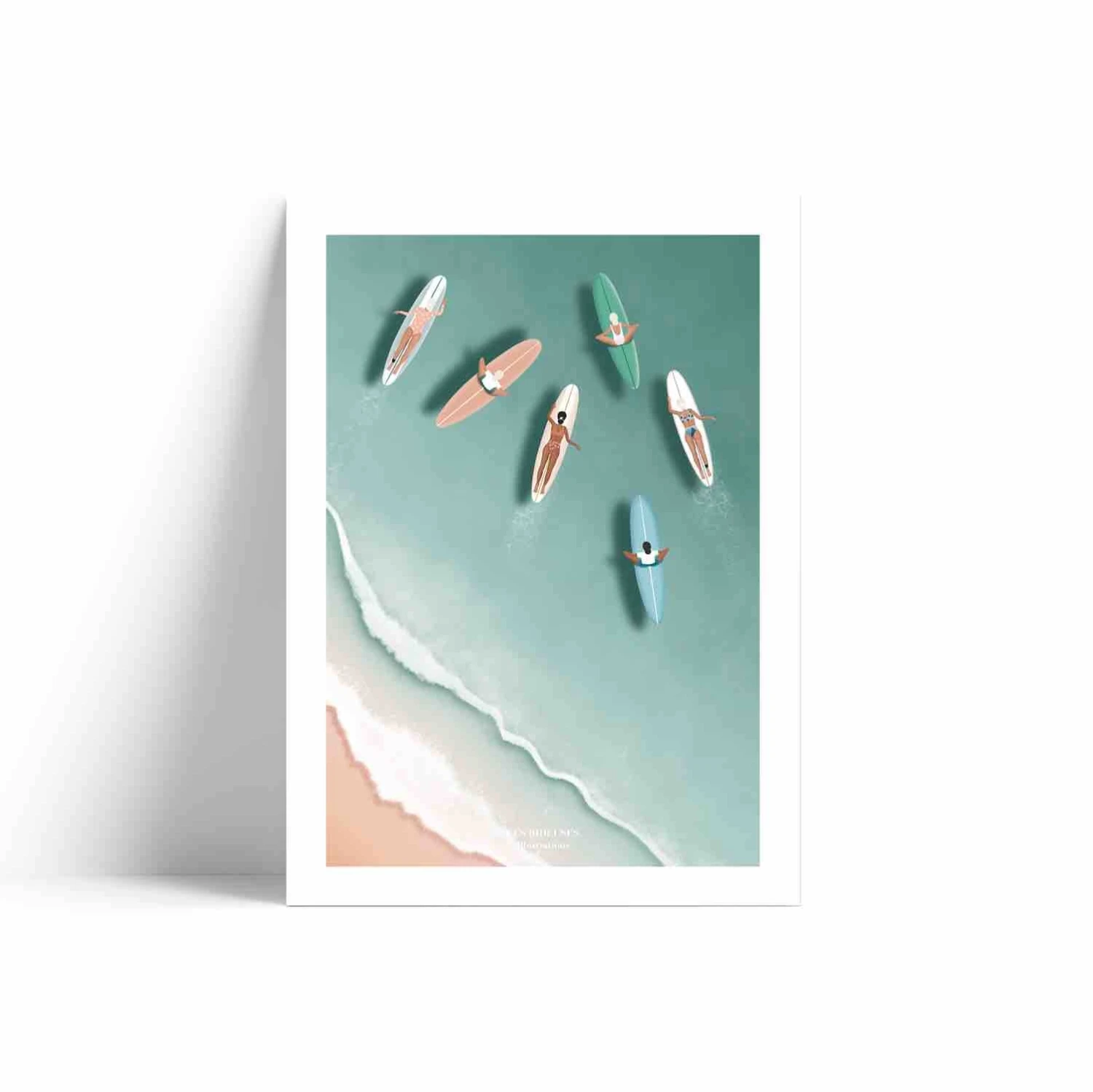 Juliette s’inspire de ses années passées en Amérique Latine pour dessiner l’art de vivre de ces Rideuses telles des Amazones de l’océan ! Elle imagine et imprime elle-même ses illustrations colorées et océanique dans les Landes où elle vit.