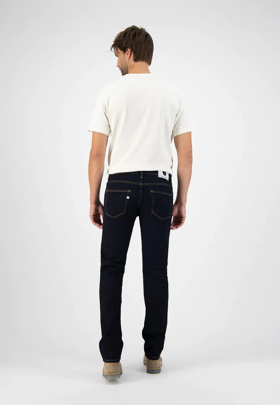 Le jean coupe droite se compose à 60% de coton biologique, 40% de coton recyclé.
