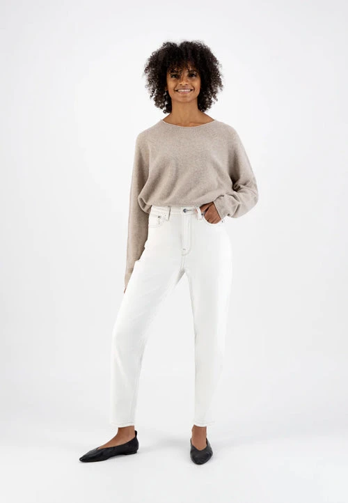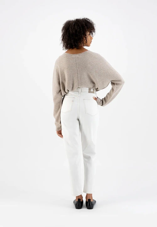 Le jean mom taille haute est fabriqué en Tunisie chez Yousstex International et la toile est produite en Espagne.
