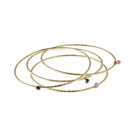 Aura Bijoux ne déroge pas à son style avec ce jonc fin et délicat. On aime l’aspect ciselé qui apporte féminité au poignet et bien évidemment la jolie pierre pendante. A porter en accumulation ou bien seul !