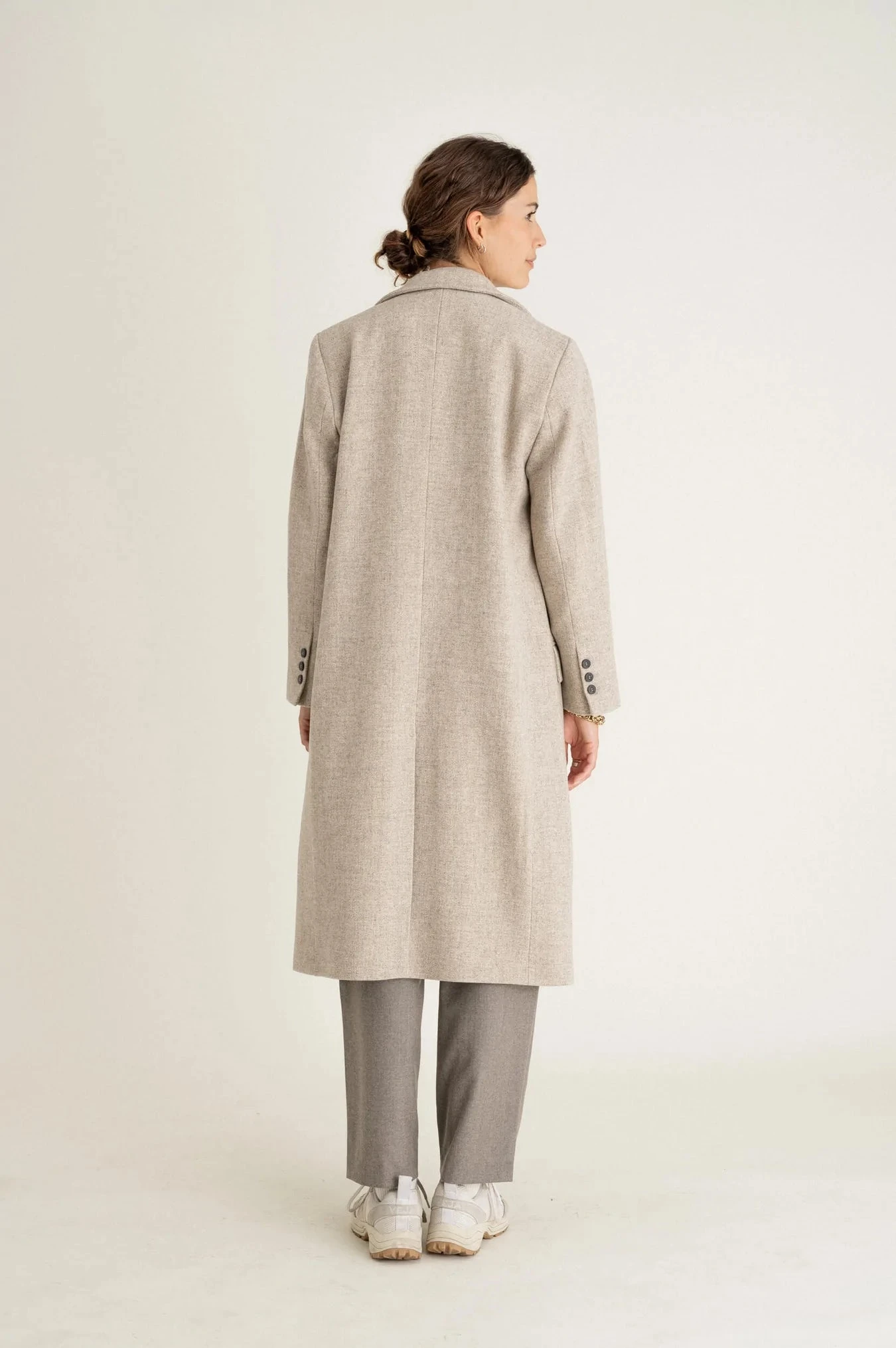 Le manteau croisé long noyoco confectionné en Roumanie est entièrement doublé avec col cranté. Chaque pièces du vestiaire noyoco sont fabriquées en Roumanie.