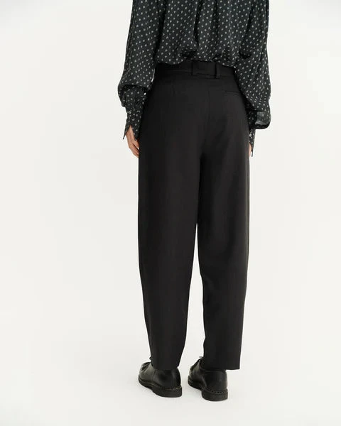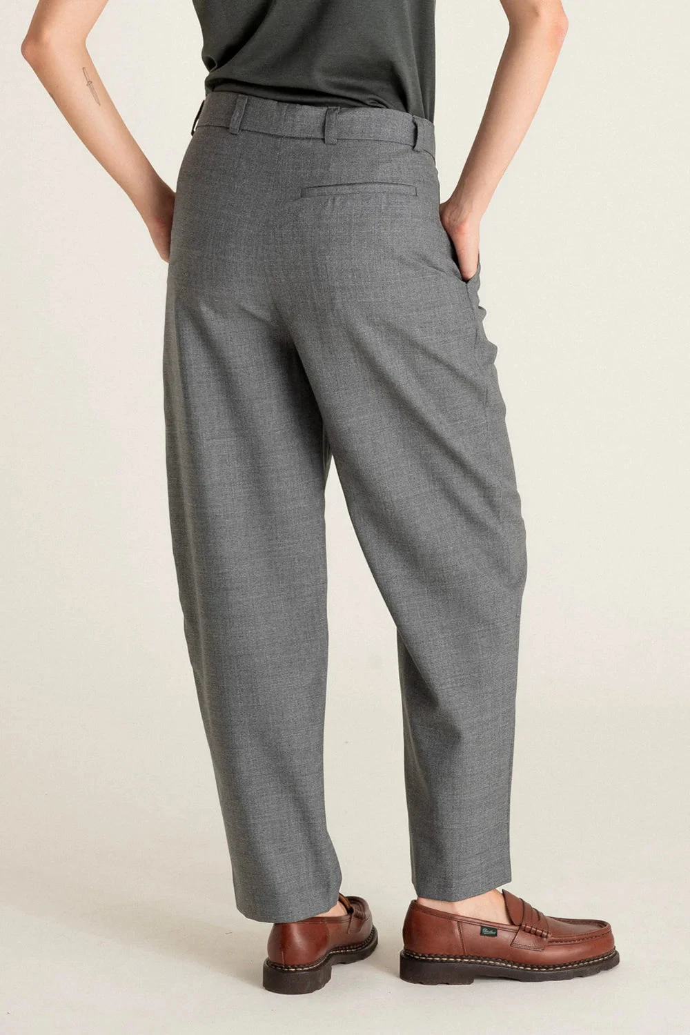 Le concept : Un pantalon carotte en laine vierge