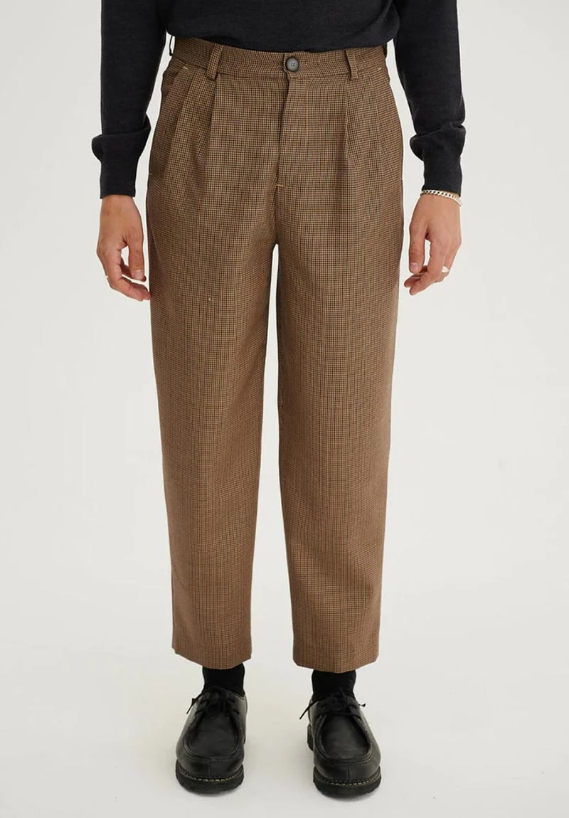 Ce pantalon CAMBRIDGE est la coupe typique d’un pantalon carotte. Il a une taille haute avec des pinces et il est ample au niveau des hanches pour se resserrer légèrement au niveau des chevilles. Il dessine une taille parfaite et met en valeur votre silhouette ! Le pantalon à porter à toutes saisons.
