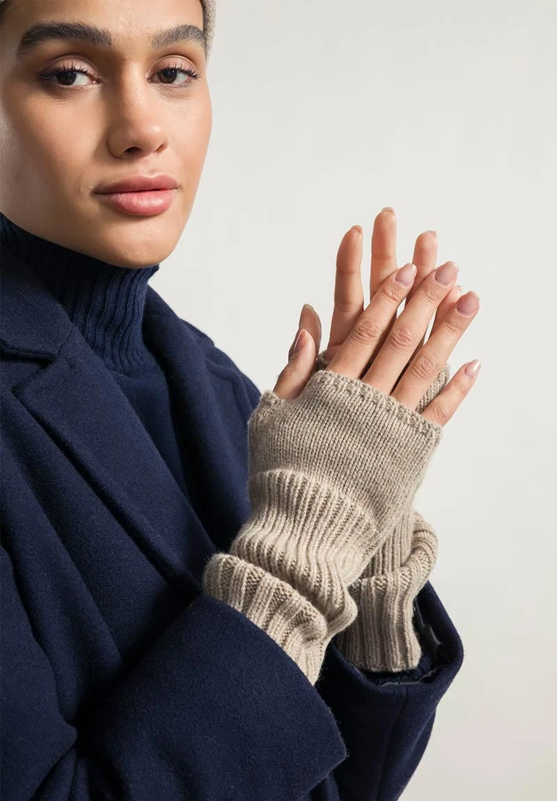 Mitaines en cachemire, beige.