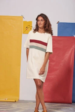 Enfiler cette robe, c’est comme se blottir dans un plaid bien douillet. Ce coton moelleux la rend d’un confort incroyable. Ajouté à cela une coupe large et la forme t-shirt : nous avons un trio gagnant ! On peut être sûr d’être à l’aise toute la journée tout en ayant du style ! Cette robe est donc la tenue effortless par excellence. En plus, elle a deux poches bien pratiques plaquées à l’avant.