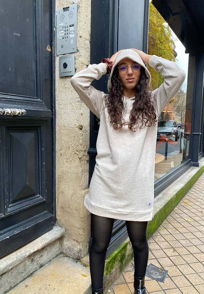 La robe sweat capuche oversize, créée par la marque Love by MD, fait des étincelles. Moderne et très cool, notre robe noé est juste parfaite avec son style oversize et ses coloris. Reste plus qu’à enfiler une paire de bottines ou de chaussures.