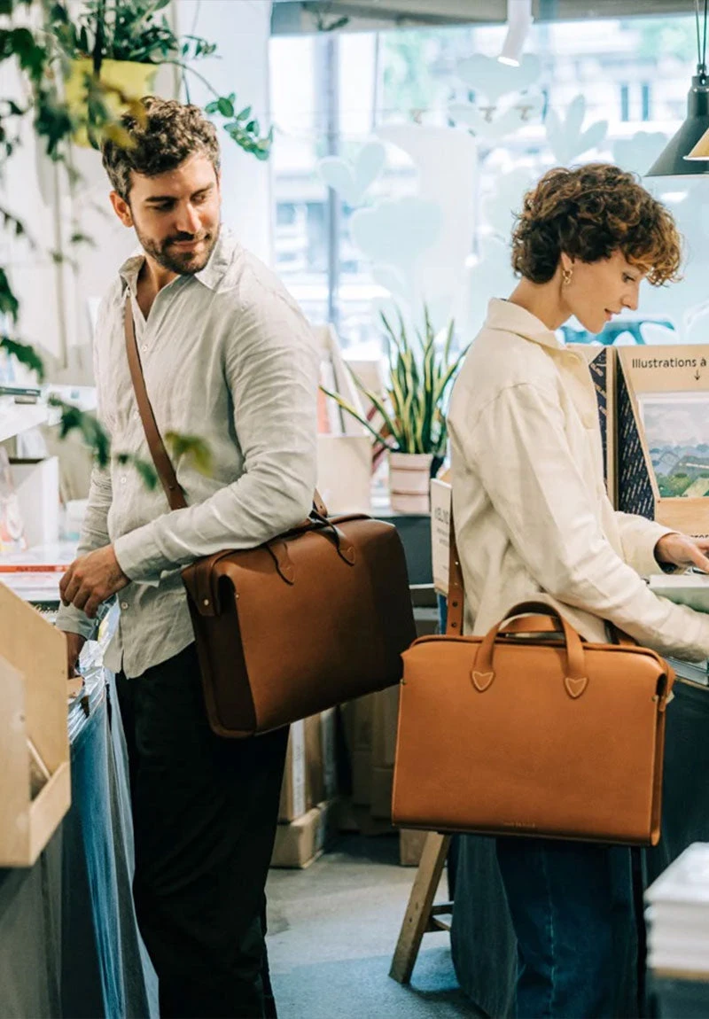 L’inspiration de ce sac vient tout droit des années 60 et notamment des cartables que portaient les facteurs français. Il est simple, élégant et vous pourrez transporter votre ordinateur 13 pouces ou bien des dossiers. Il sera idéal pour aller travailler ! Avec le temps le cuir va joliment se patiner. Un style résolument vintage qu’on aime beaucoup !
