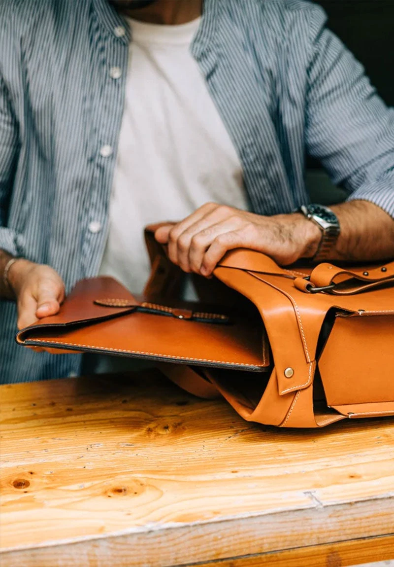 Le sac est fait en cuir de vachette pleine fleur avec un tannage végétal.