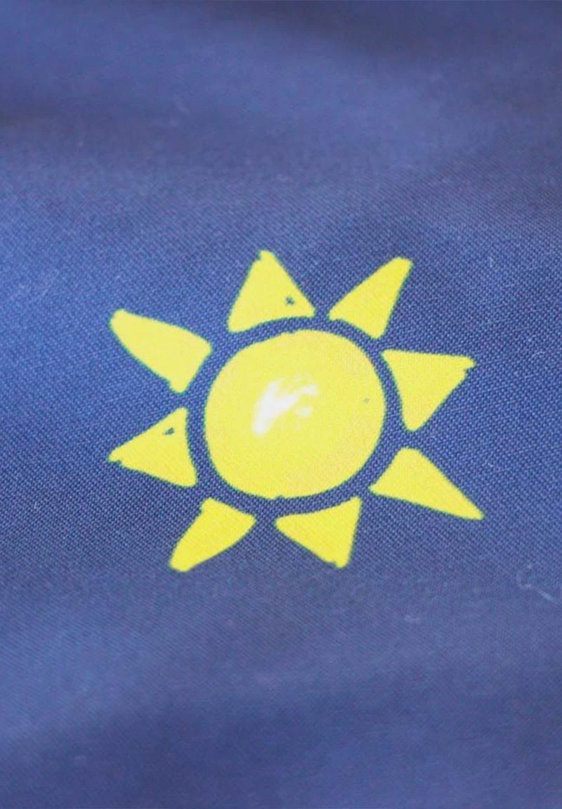 Fond bleu marine avec imprimé soleils.