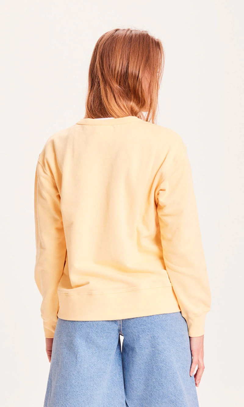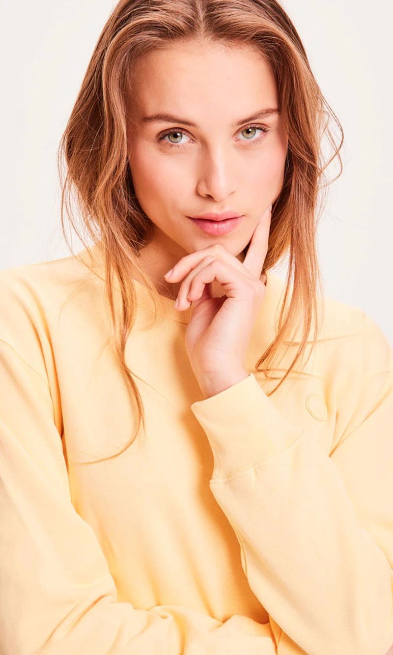 Ce sweat est une création de Knowledge Cotton Apparel : marque référence du vêtement éthique. Ce sweat est le basique indispensable à toute garde-robe. Il est confortable et se porte loose. Il comporte des côtes aux manches et à l’ourlet. Ce joli jaune pastel donne une note printanière à votre tenue.