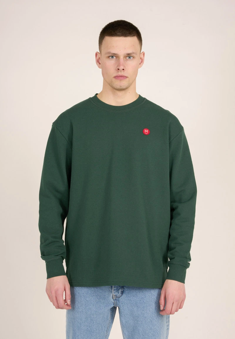 Ce sweat est une création de Knowledge Cotton Apparel : marque référence du vêtement éthique. Il a une belle couleur kaki avec un effet chiné. Sa coupe est large et confortable. Il a aussi des surpiqures rouges au niveau des épaules et le logo de la marque sur le devant. Ce sweat est le basique indispensable à toute garde-robe et il est 100% recyclé !