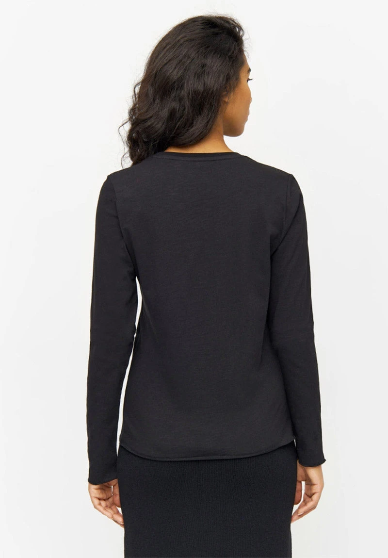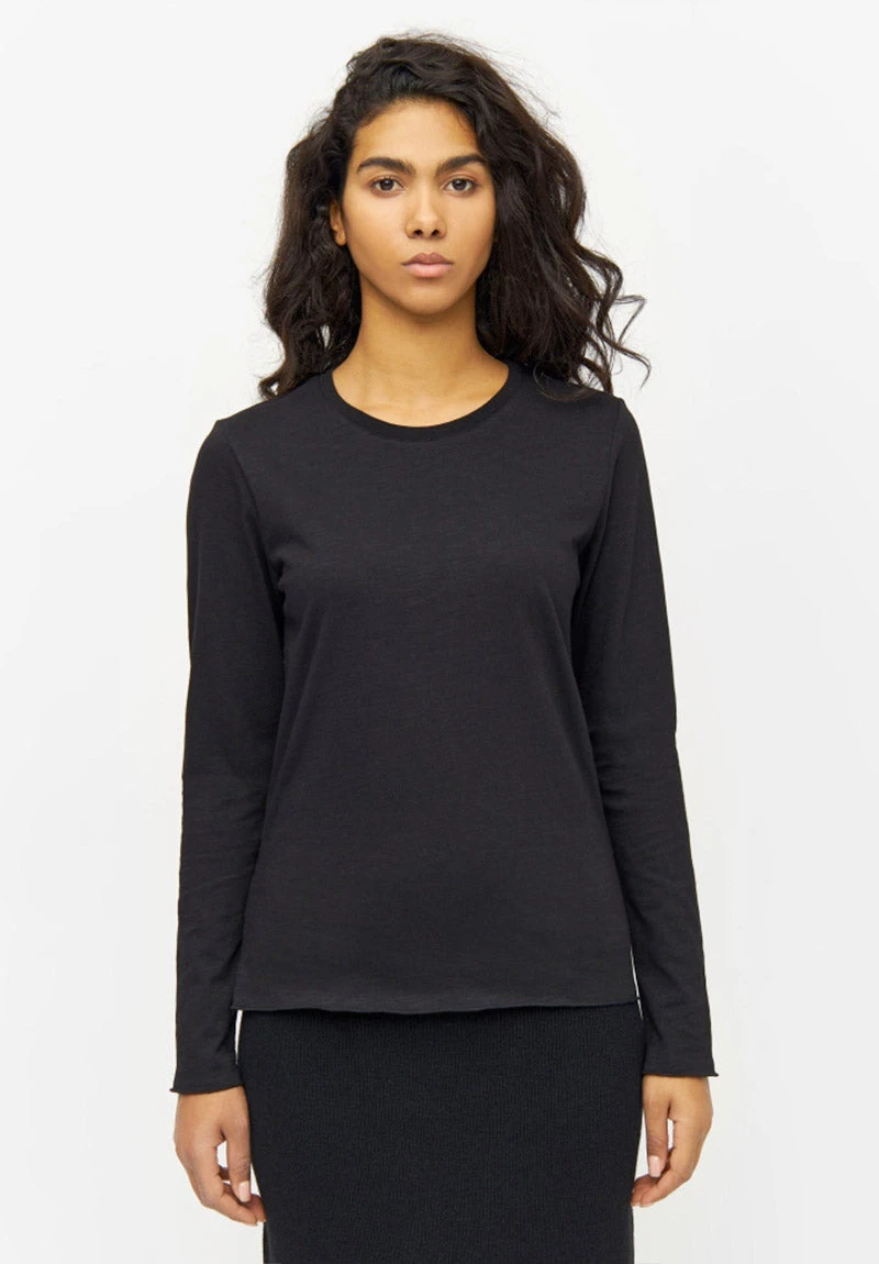Ce t-shirt est une création de Knowledge Cotton Apparel : marque référence du vêtement éthique. Il se compose de manches longues, d’un col rond et se porte près du corps pour un effet seconde peau. Il peut se porter en hiver sous un pull ou bien en été !