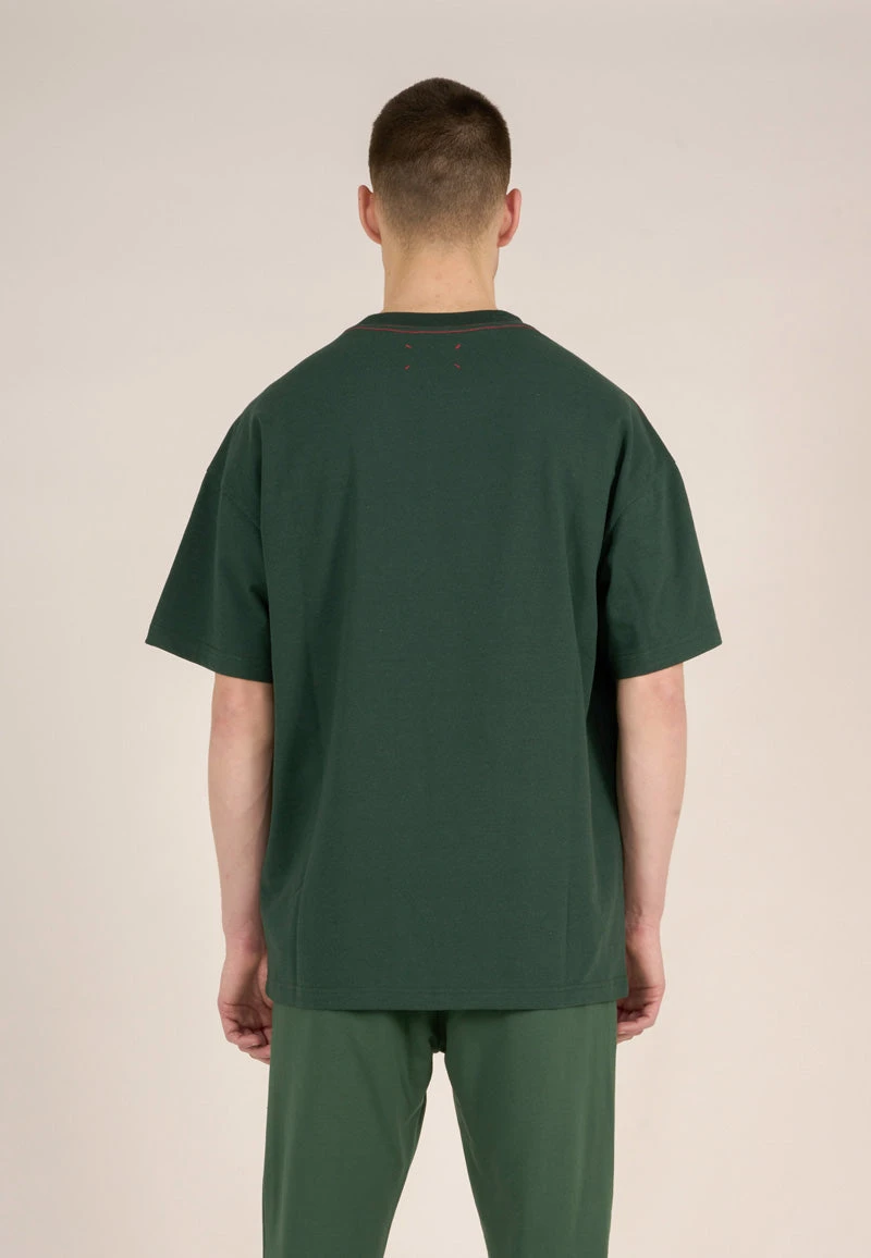 Ce t-shirt est une création de Knowledge Cotton Apparel : marque référence du vêtement éthique. Il a un bel un effet chiné pour une teinte unique. Sa coupe est large et confortable. Il a aussi des surpiqures rouges au niveau des épaules et le logo de la marque sur le devant. Ce t-shirt est le basique indispensable à toute garde-robe et il est 100% recyclé !