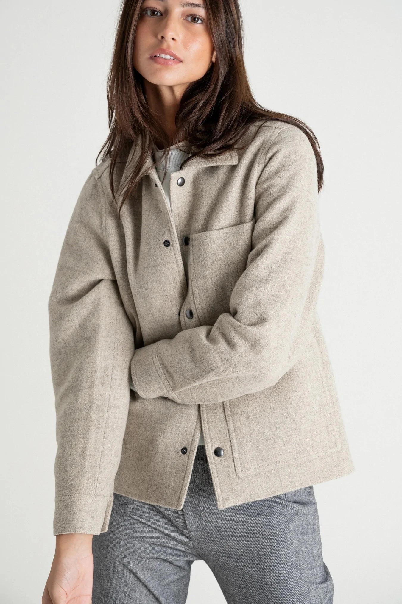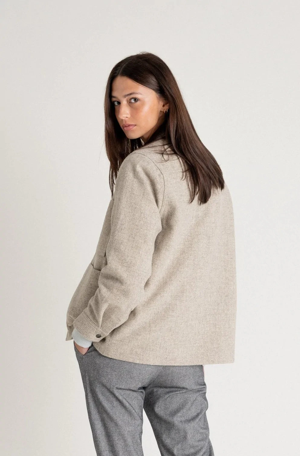 La veste courte beige est en 100% Laine.